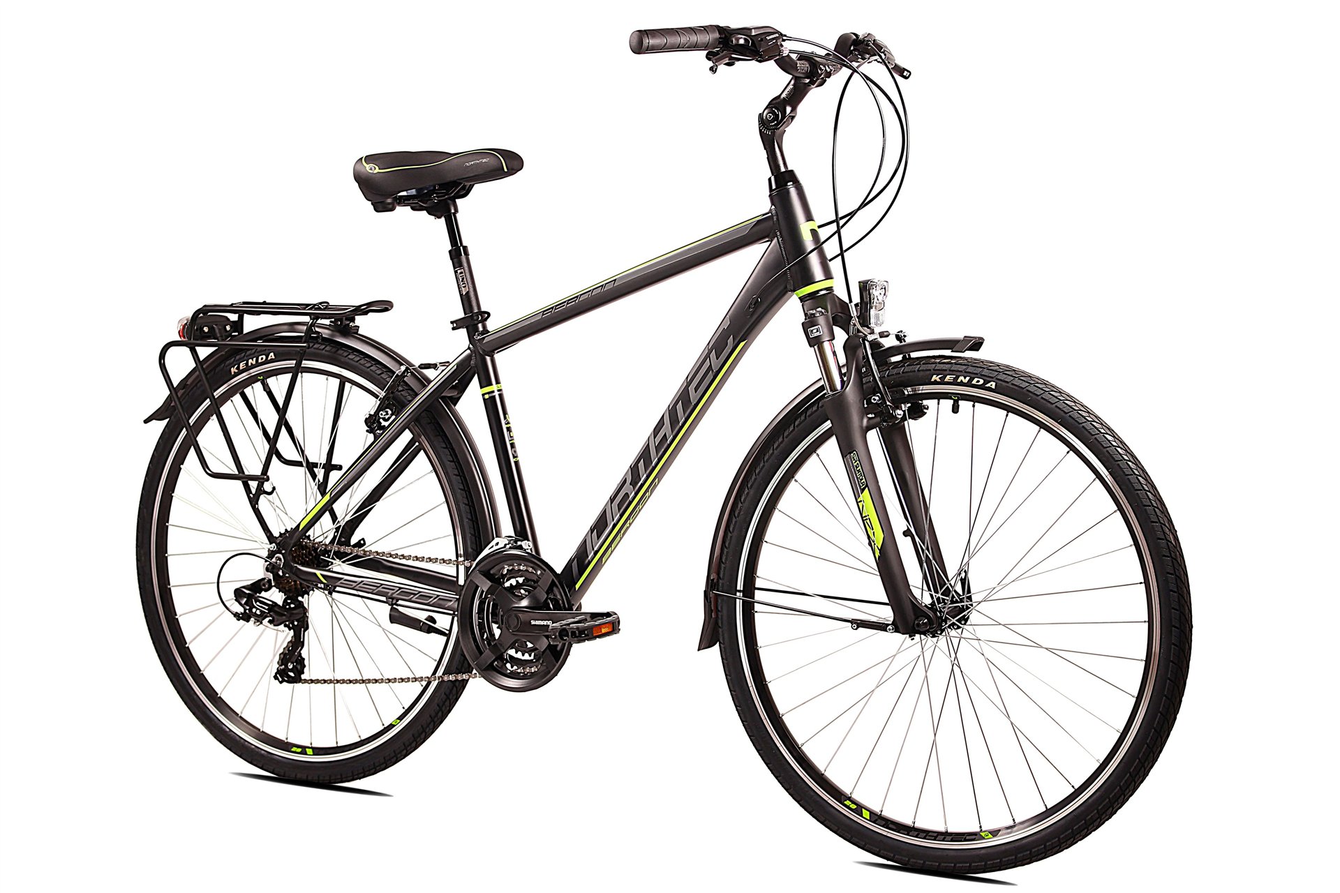 W przypadku roweru turystycznego, którym często będziemy się poruszać z dużym obciążeniem powodowanym przez umieszczony w sakwach ekwipunek, bardzo ważne są odpowiednio dobrane i pewnie działające hamulce. Szybkie zatrzymanie rozpędzonego pojazdu może decydować o naszym bezpieczeństwie, warto więc poświęcić tej sprawie nieco uwagi. W rowerach turystycznych Northtec mogą być zamontowane znakomite hamulce firmy Tektro, producenta z ponad 30-letnim doświadczeniem w produkcji osprzętu rowerowego, które pozwolą na bezpieczną jazdę w każdych warunkach. Kolejnymi elementami, które są niezbędne dla zapewnienia bezpieczeństwa podczas jazdy rowerem turystycznym, jest odpowiednie oświetlenie i odblaski. Sprawna lampka z przodu i z tyłu to absolutne minimum. Ważna jest też obecność dodatkowych elementów odblaskowych. W rowerach turystycznych Northtec mogą być zamontowane opony firmy Kenda z technologią Reflective Tape – paskami, znakomicie odbijającymi światło, które poprawiają widzialność roweru z boku.