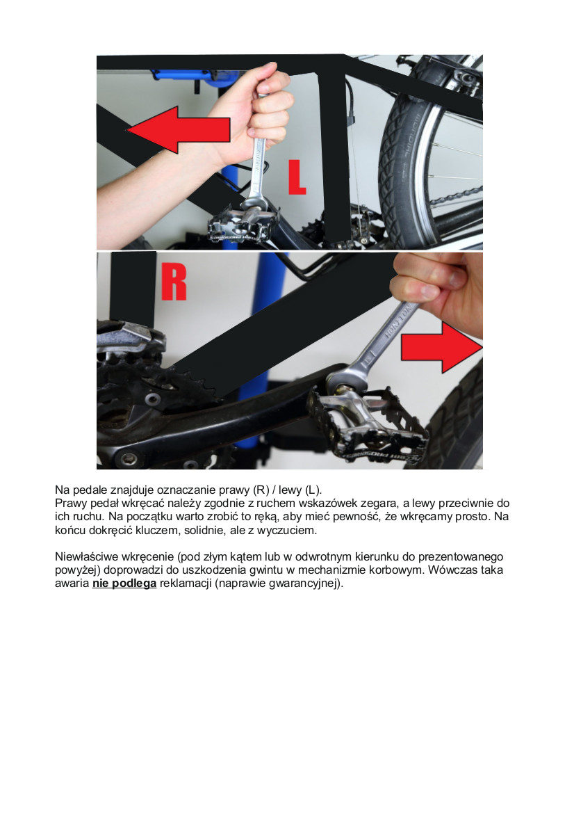 - Instrukcja wkręcania pedały do mechanizmu korbowego: