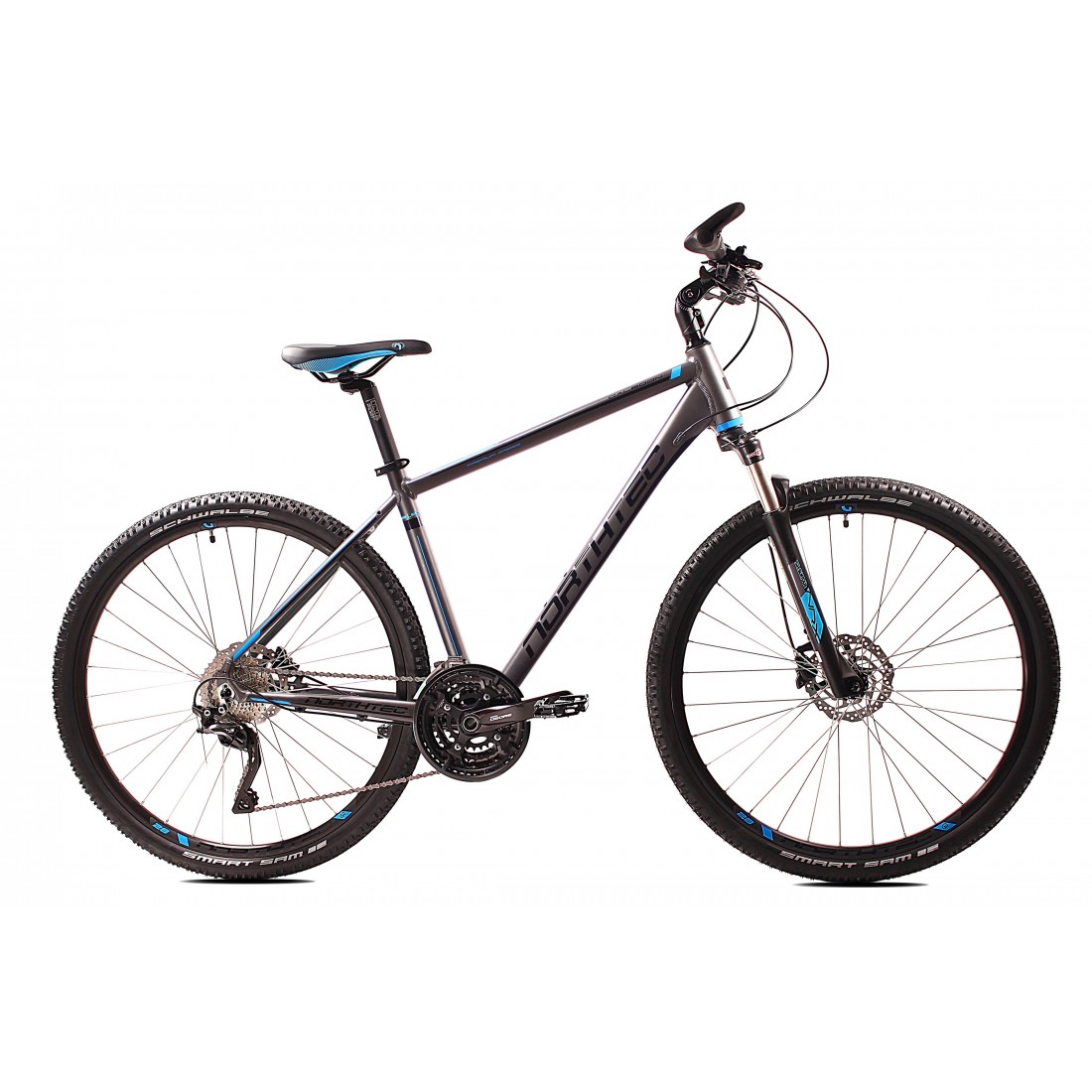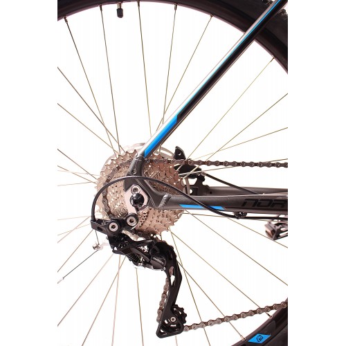 Perfekcyjny rower crossowy, dla szukających najlepszego osprzętu, intensywnie jeżdżących cyklistów. Lekka hydroformowana rama aluminiowa o crossowej geometrii posiadająca system: Cable Inside Frame. Wyposażony w Hamulce Tarczowe hydrauliczne Shimano 201. Pełna Profesjonalna grupa napędowa Shimano Deore 3x10 z tylną przerzutką Deore XT. Wysokiej klasy powietrzny amortyzator Suntour NRX AIR RL 700C 75mm z blokadą skoku z kierownicy zapewni precyzyjne tłumienie drgań i wstrząsów. Koła skonstruowane na wzmacnianych obręczach, szprychach Sapim Leader oraz piastach Shimano HB-TX505 , uzbrojone w opony Schwalbe Smart Sam. Posiada specjalne siodełko posiadające korpus z systemem amortyzacji D2, wkładkę żelową z pamięcią kształtu zapewniającą najwyższy komfort w każdej pozycji podczas jazdy.
