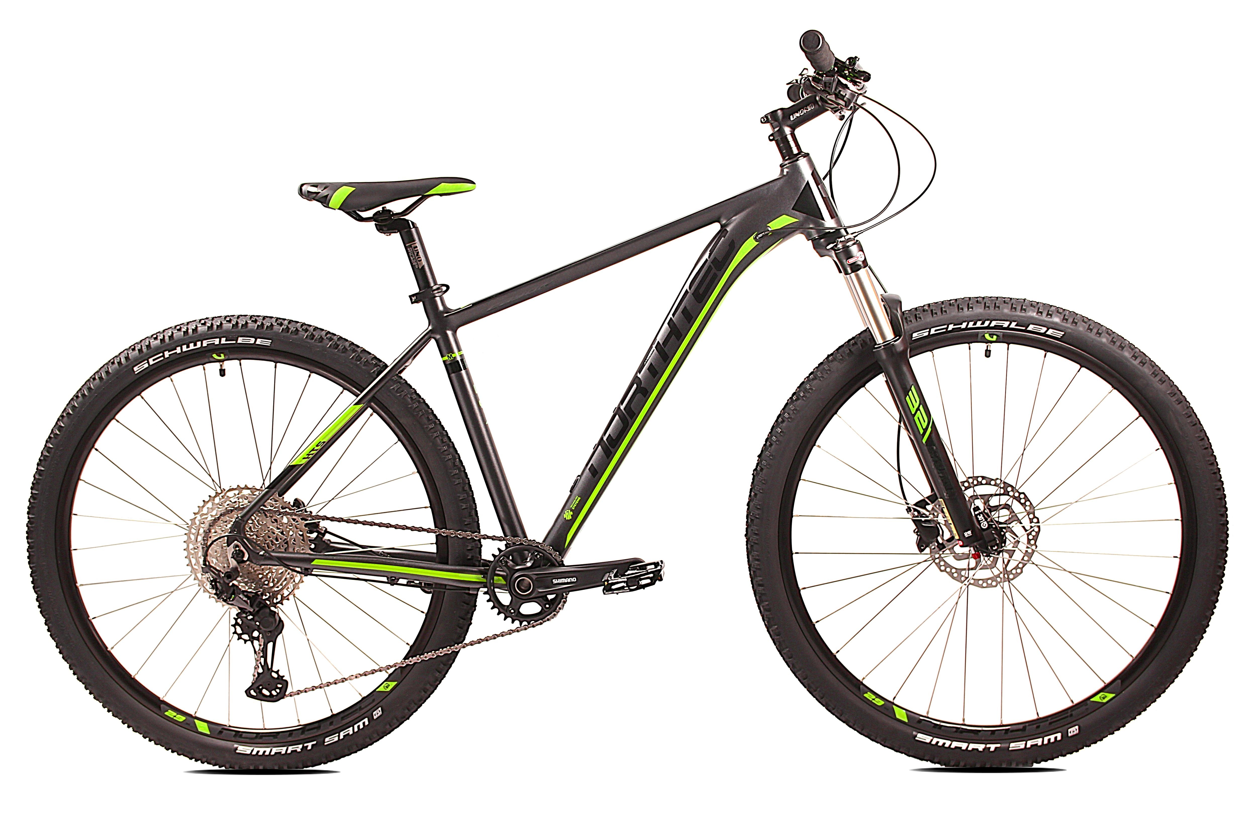 Solidny i wytrzymały rower MTB 29" do jazdy rekreacyjnej dla zaawansowanych fanów kolarstwa górskiego. Lekka hydroformowana rama aluminiowa o sportowej geometrii, główce tapered, posiadająca system: Cable Inside Frame. Wyposażony w Hamulce Tarczowe hydrauliczne Shimano BR MT201. Niezawodna pełna grupa napędowa Shimano Deore 1x12 z tylną przerzutką Deore XT. Solidne, wytrzymałe koła zbudowane na piastach Shimano HB-MT400, wzmacnianych obręczach, szprychach Sapim Leader i oponach Schwalbe Smart Sam gwarantują dużą wytrzymałość i bezpieczną jazdę w terenie. Powietrzny amortyzator Suntour XCR RL-32 AIR 100mm z regulacją tłumienia i manetką blokady skoku z kierownicy, zapewni optymalne tłumienie drgań i wstrząsów na górskich trasach.
