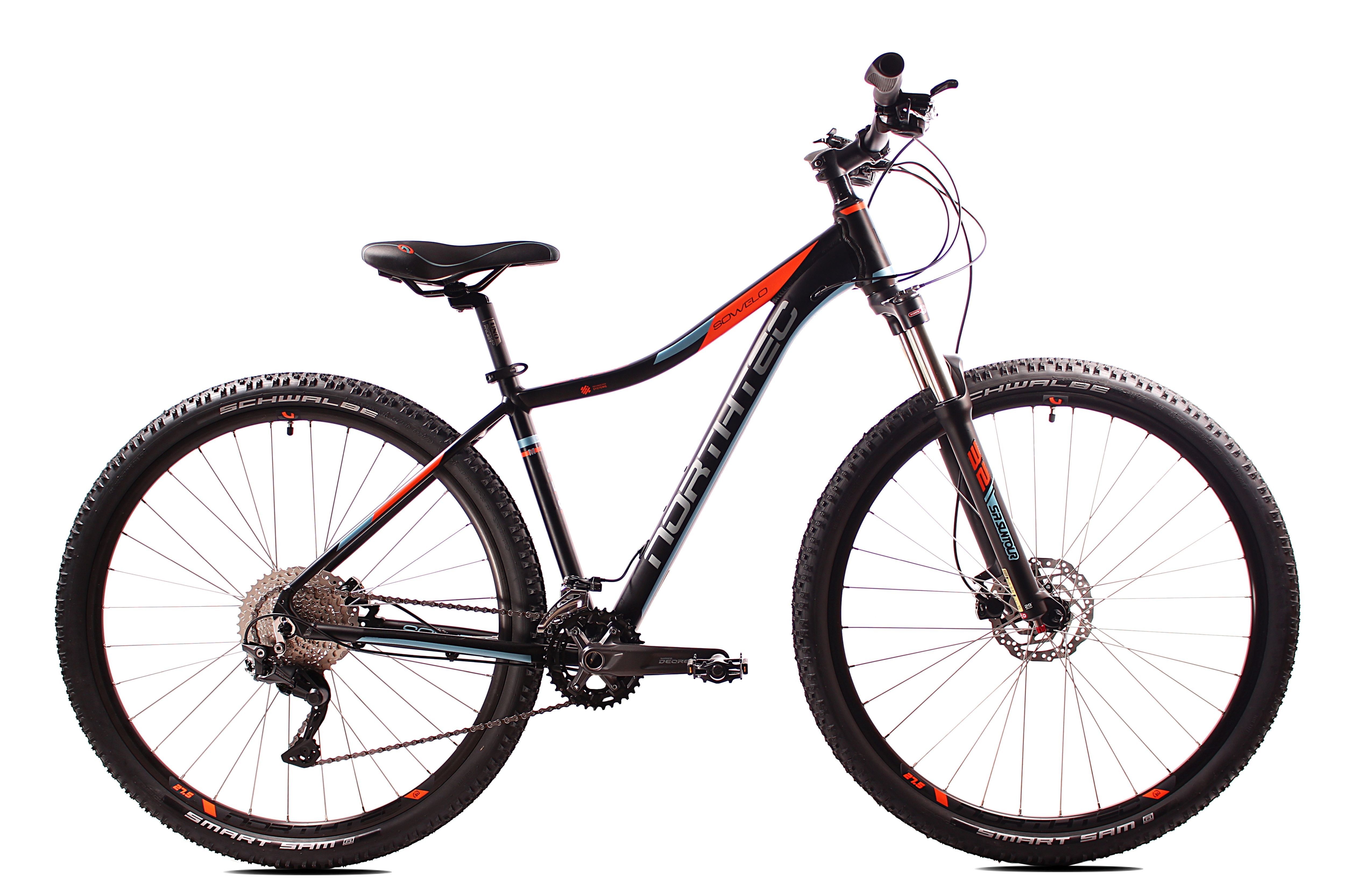 Solidny i wytrzymały rower MTB 27,5" do jazdy rekreacyjnej dla zaawansowanych fanów kolarstwa górskiego. Lekka hydroformowana rama aluminiowa o sportowej geometrii, posiadająca system: Cable Inside Frame. Wyposażony w Hamulce Tarczowe hydrauliczne Shimano. Niezawodna pełna grupa napędowa Shimano Deore 2x10. Solidne, wytrzymałe koła zbudowane na piastach Shimano HB TX505, wzmacnianych obręczach, szprychach Sapim Leader, oponach Schwalbe Smart Sam gwarantują dużą wytrzymałość i bezpieczną jazdę w terenie. Powietrzny amortyzator Suntour XCR RL-32 AIR 100mm z regulacją tłumienia i manetką blokady skoku z kierownicy, zapewni optymalne tłumienie drgań i wstrząsów na górskich trasach.