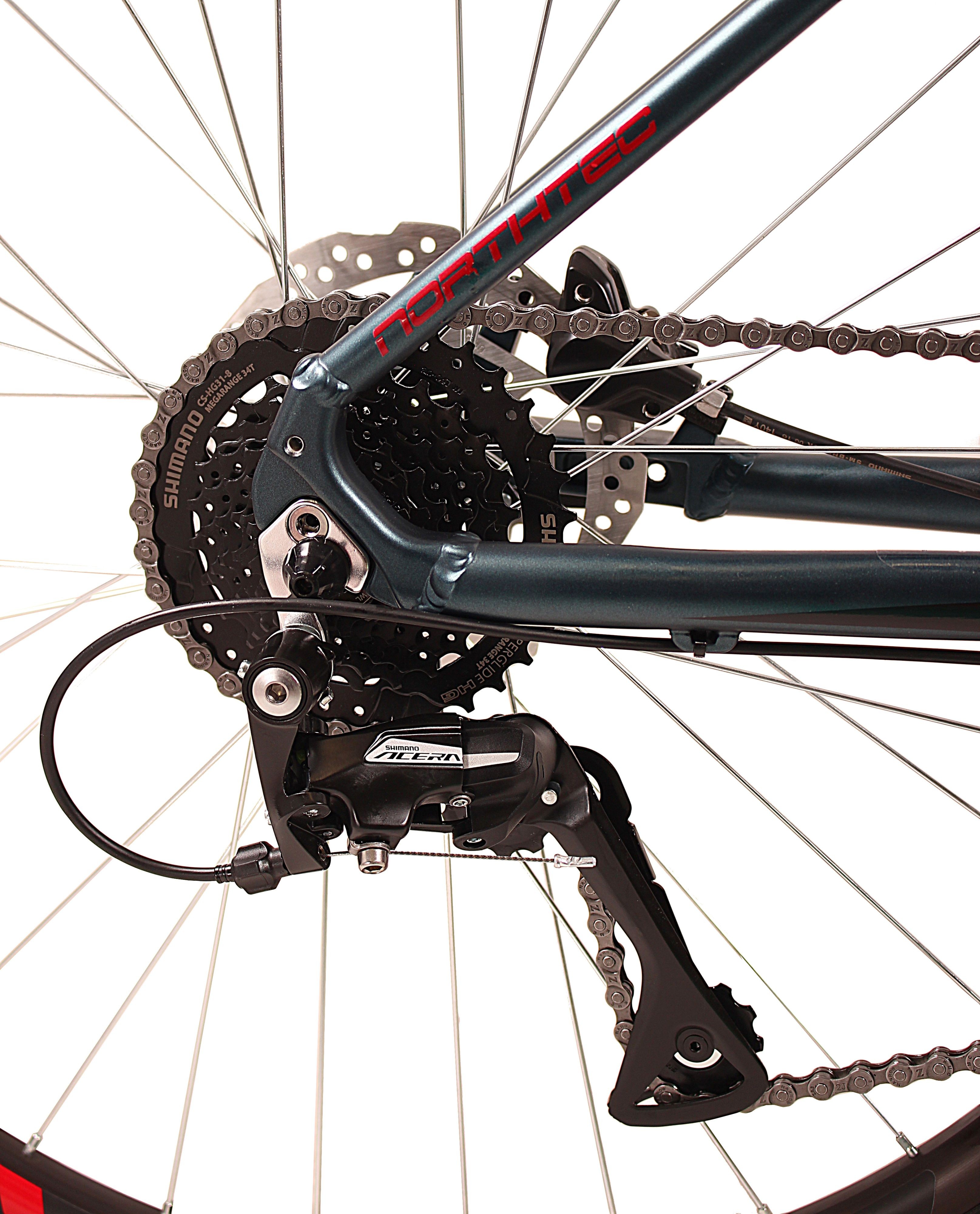 Solidny i wytrzymały rower MTB , dedykowany wszystkim rozpoczynającym swoją przygodę z kolarstwem górskim. Hydroformowana rama aluminiowa o sportowej geometrii, posiadająca system: Cable Inside Frame. Wyposażony w Hamulce Tarczowe hydrauliczne Shimano. Koła zbudowane na piastach Shimano, wzmacnianych obręczach, szprychach Sapim, pokonają każdą przeszkodę. 8-biegowy napęd Shimano Acera pozwoli z łatwością pokonywać wzniesienia. Amortyzator Suntour XCE DS 100mm z regulacją, zapewni optymalne tłumienie drgań i wstrząsów.