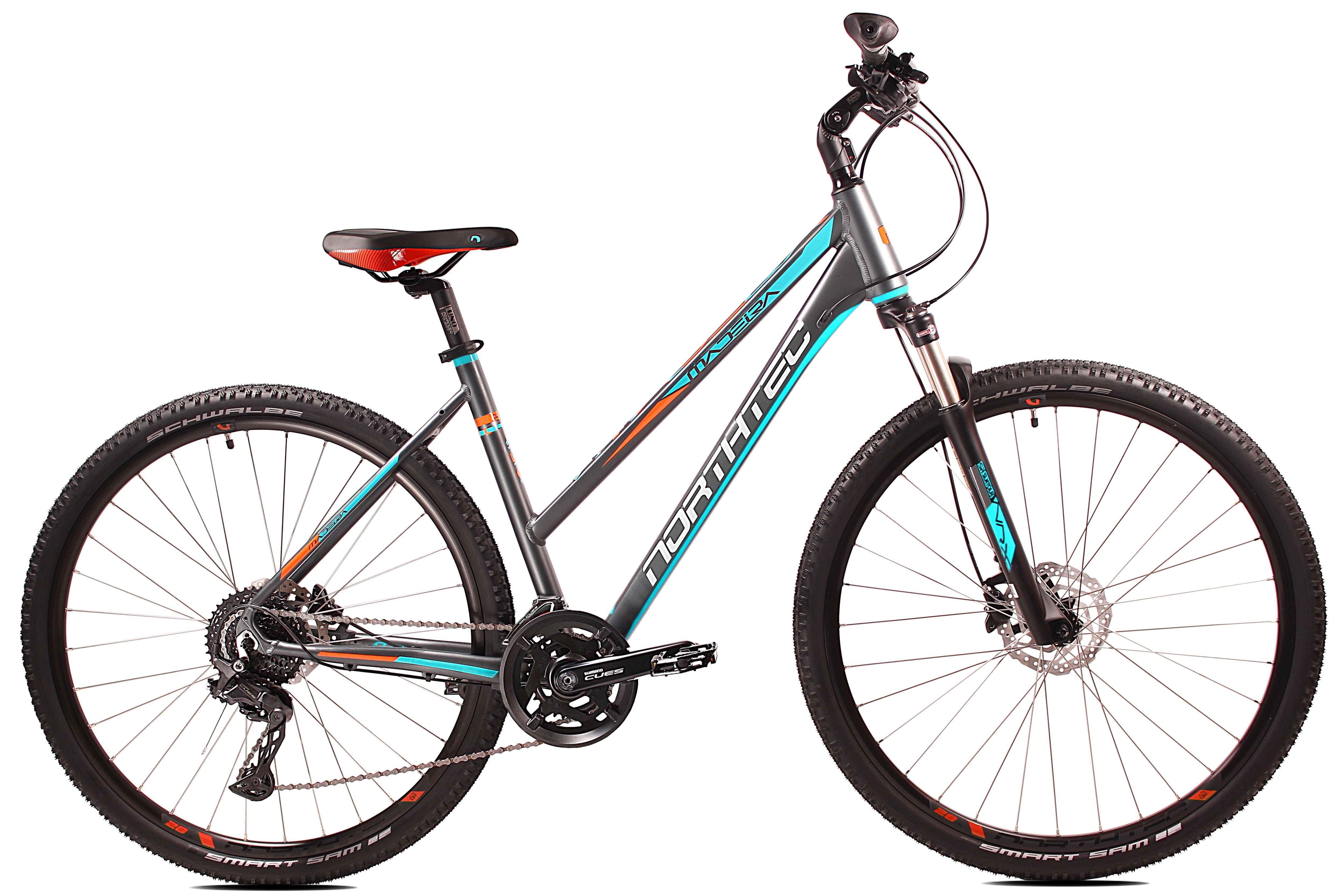 Uniwersalny, solidny rower crossowy wyposażony w Hamulce Tarczowe hydrauliczne Shimano. Lekka hydroformowana rama aluminiowa o crossowej geometrii posiadająca system: Cable Inside Frame. Wysokiej klasy grupa napędowa Shimano CUES 2x10. Powietrzny Amortyzator Suntour NRX Air RL 700C 75mm z regulacją i blokadą skoku z kierownicy zapewni optymalne tłumienie drgań i wstrząsów nawet w trudnym terenie. Solidne, wzmacniane koła, zbudowane na piastach Shimano FH-QC300-HM, szprychach Sapim Leader oraz wytrzymałych oponach Schwalbe Smart Sam. Posiada specjalne siodełko posiadające korpus z systemem amortyzacji D2, wkładkę żelową z pamięcią kształtu zapewniającą najwyższy komfort w każdej pozycji podczas jazdy.
