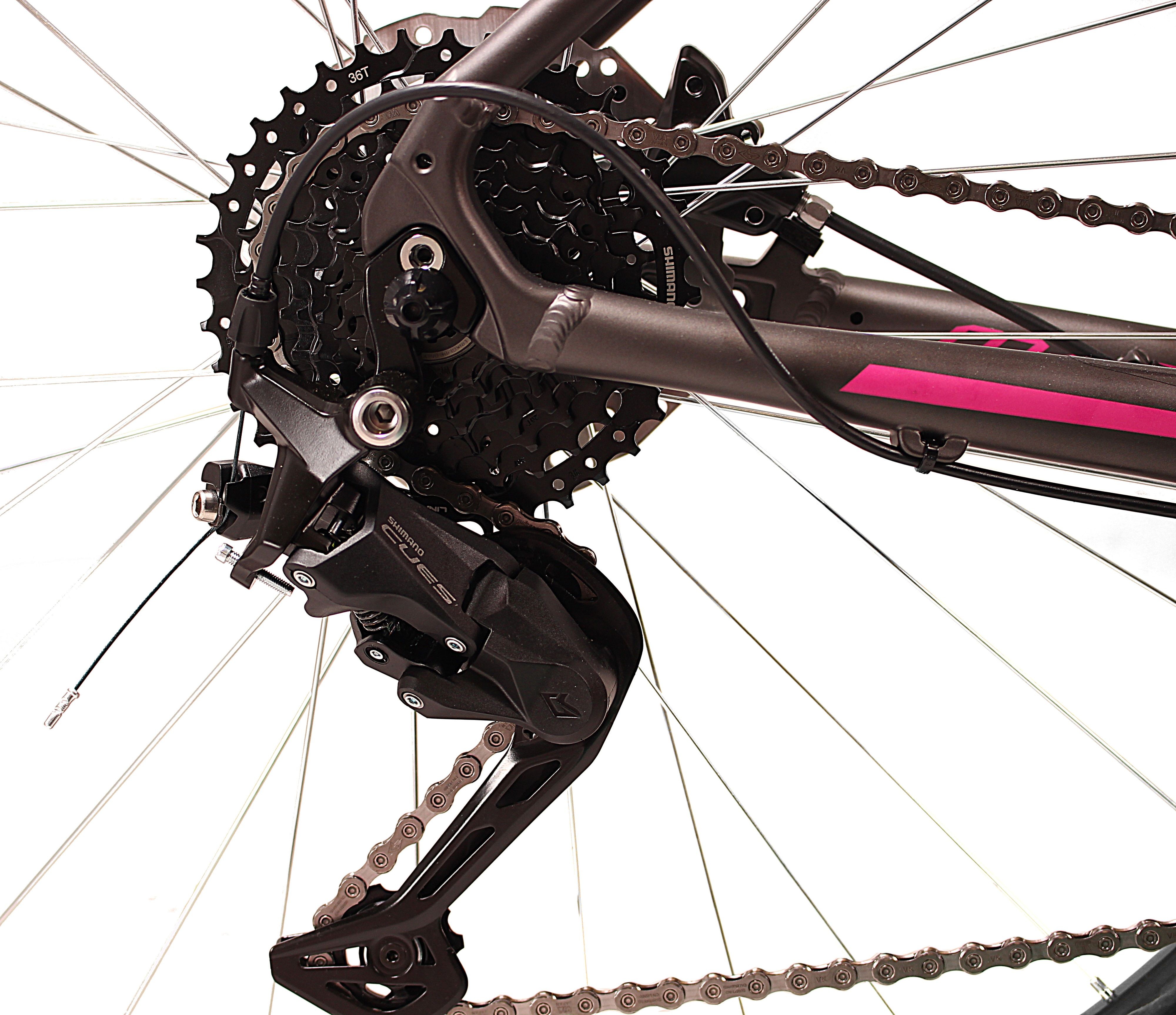 Uniwersalny, solidny rower crossowy wyposażony w hamulce Tarczowe hydrauliczne Shimano. Lekka hydroformowana rama aluminiowa o crossowej geometrii posiadająca system: Cable Inside Frame. Wysokiej klasy grupa napędowa Shimano CUES 2x9. Amortyzator Suntour NVX RL 700C 75mm z regulacją i blokadą skoku z kierownicy zapewni optymalne tłumienie drgań i wstrząsów nawet w trudnym terenie. Solidne, wzmacniane koła, zbudowane na piastach Shimano FH-QC300, szprychach Sapim Zink oraz wytrzymałych oponach Kenda. Posiada specjalne siodełko posiadające korpus z systemem amortyzacji D2, wkładkę żelową z pamięcią kształtu zapewniającą najwyższy komfort w każdej pozycji podczas jazdy.