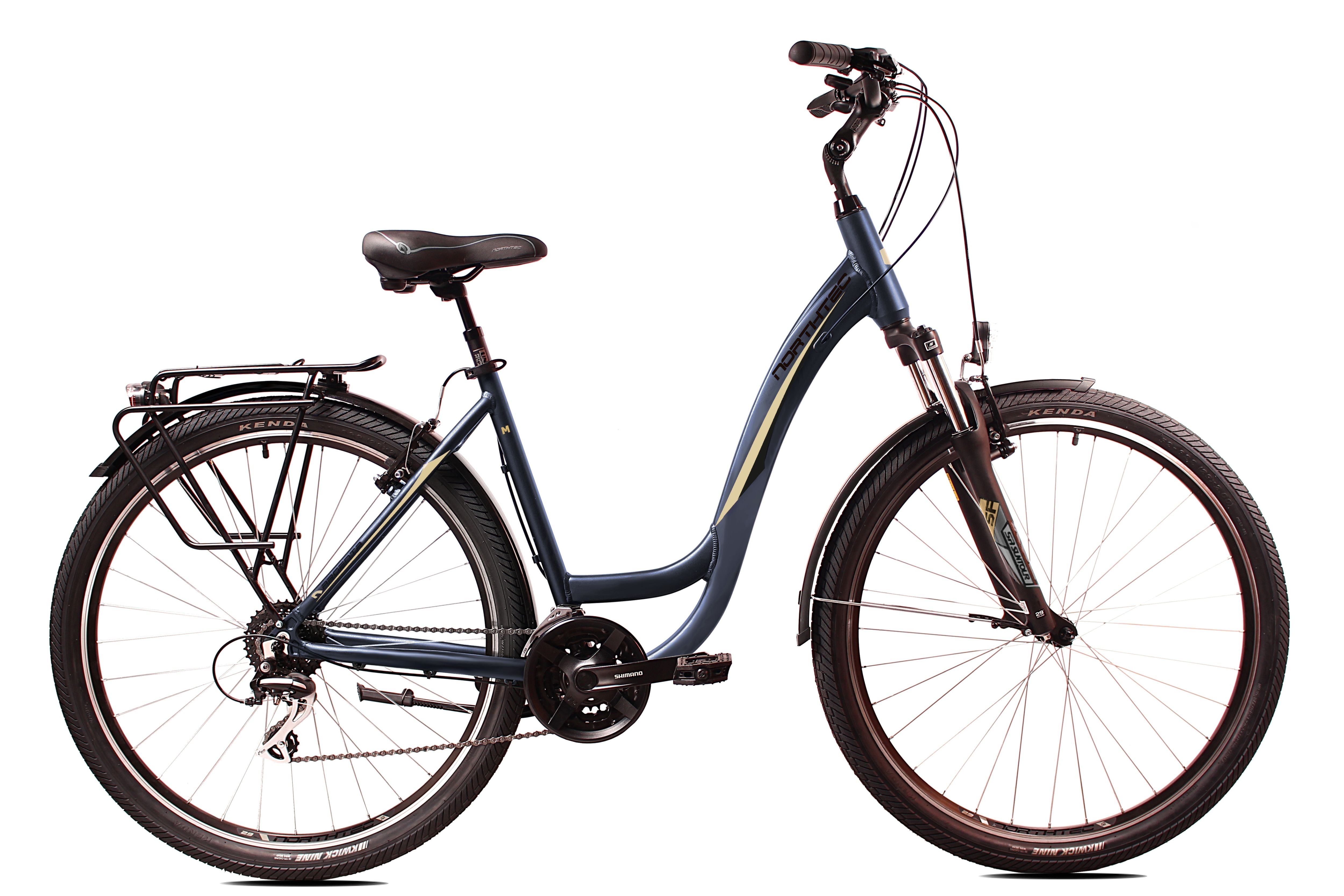 Lekka rama aluminiowa o komfortowej geometrii, przeznaczona dla kobiet. Niezawodny napęd Shimano Acera 3x7. Amortyzator SR Suntour: XCE 28 AP 29 100mm. Wspornik siodła amortyzowany, szerokie wygodne siodełko na elastomerach. Solidne, wzmacniane koła na piastach Shimano, szprychach Sapim.