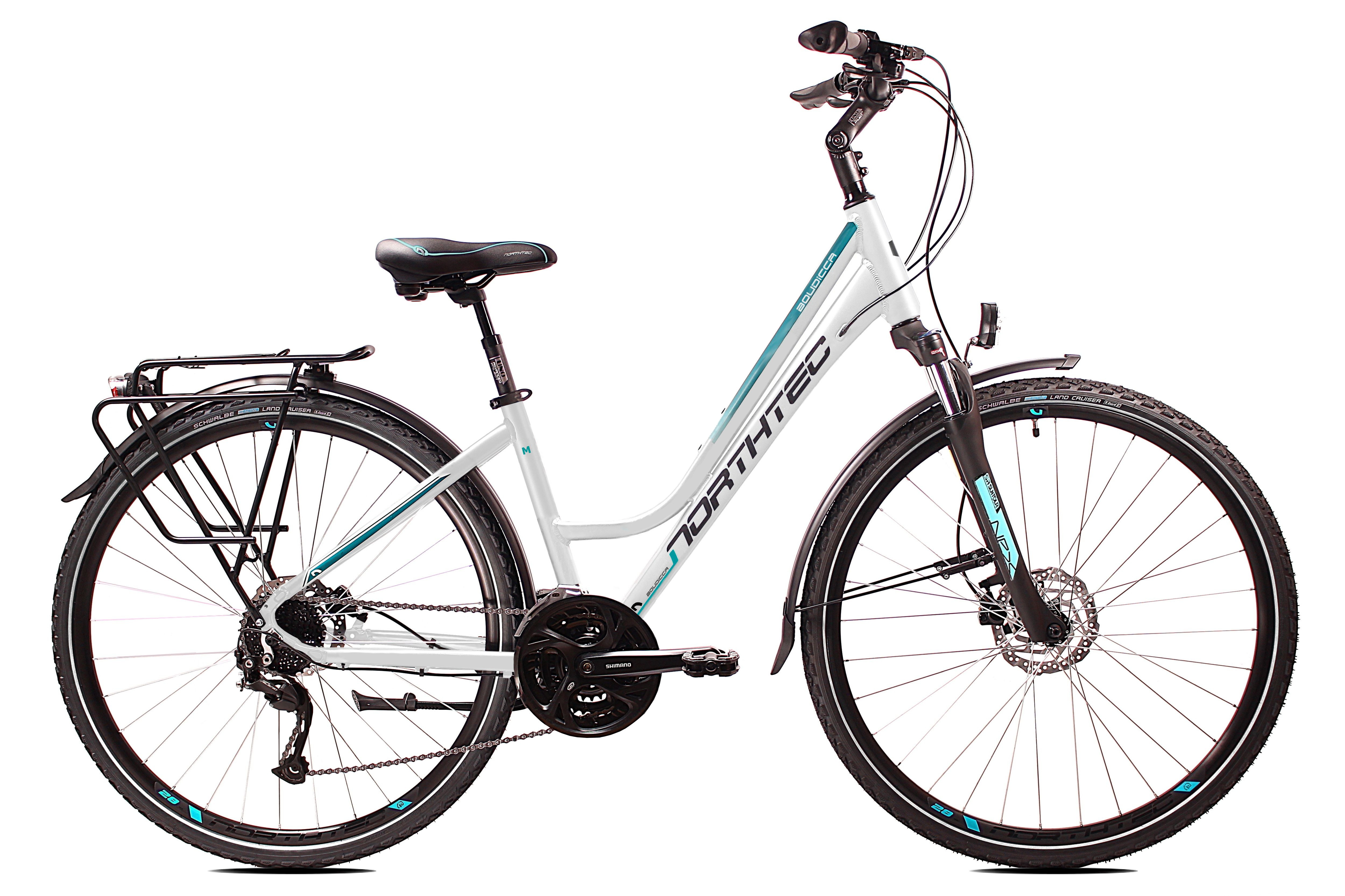 Nowy model roweru trekkingowego, dla wymagających cyklistów/ek, pokonujących wielokilometrowe trasy w różnorodnym terenie. Wyposażony w hamulce Tarczowe hydrauliczne Shimano BR 200. Lekka hydroformowana rama aluminiowa o komfortowej geometrii, posiadająca system: Cable Inside Frame . Niezawodna grupa napędowa Shimano Alivio/Altus 3x9. Amortyzator NEX HLO DS 700C 63mm z regulacją i blokadą skoku zapewni optymalne tłumienie drgań I wstrząsów. Solidne, wzmacniane koła, zbudowane na piastach Shimano, szprychach Sapim oraz oponach Schwalbe Land Cruiser z wkładką antyprzebiciową. Amortyzowany wspornik siodła, szerokie wygodne siodełko elastomerowe. W podstawowym wyposażeniu zamontowany jest bagażnik aluminiowy, oświetlenie ledowe bateryjne, solidne błotniki SKS oraz podpórka.
