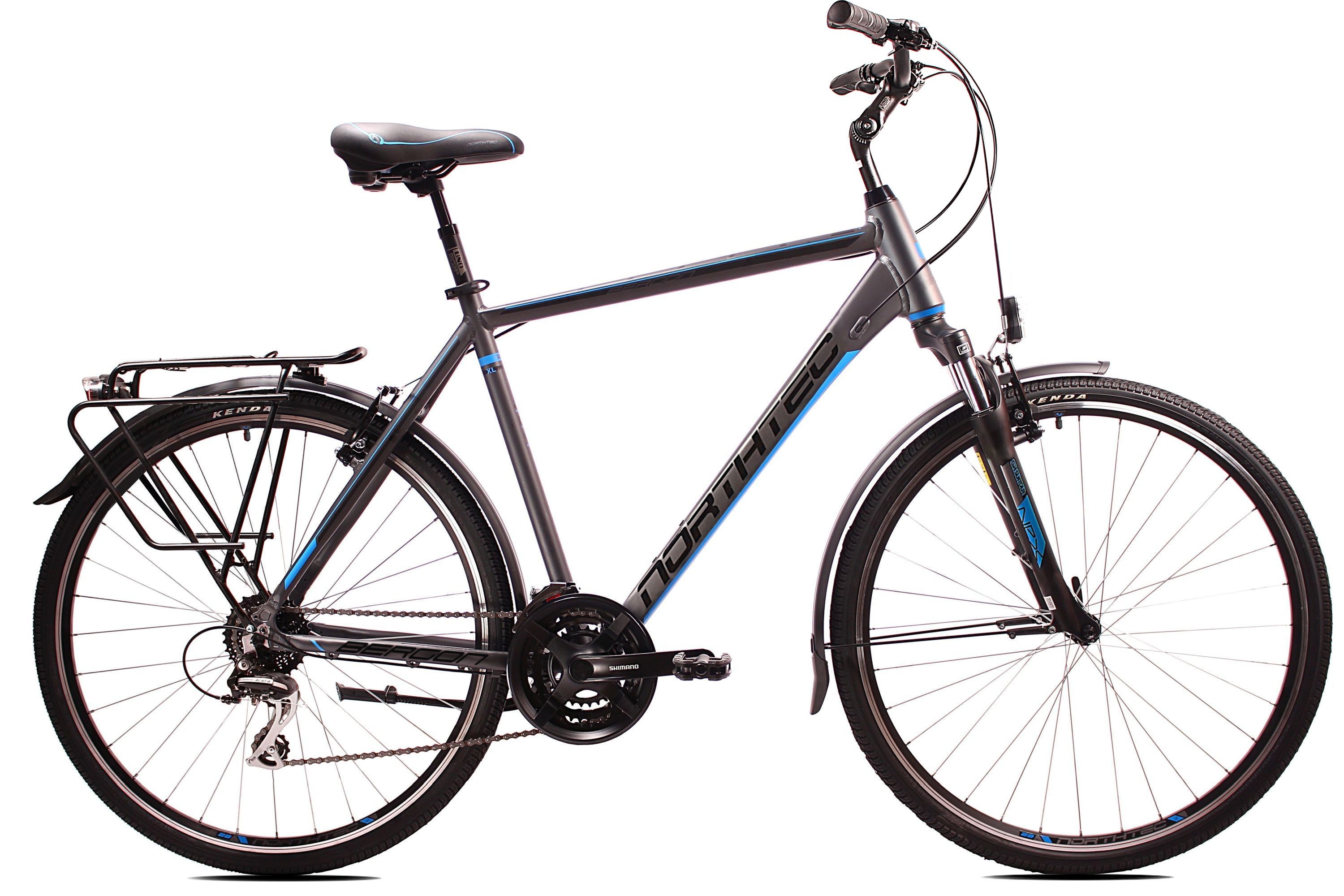 Solidny, wytrzymały rower trekkingowy dla amatorów turystyki rowerowej. Lekka hydroformowana rama aluminiowa o komfortowej geometrii, posiadająca system: Cable Inside Frame. Niezawodna grupa napędowa Acera 3x8. Amortyzator Suntour NEX P 700C 63mm z regulacją skoku. Solidne, wzmacniane koła, zbudowane na piastach Shimano HB TX500, szprychach Sapim. Amortyzowany wspornik siodła, szerokie wygodne siodełko elastomerowe. W podstawowym wyposażeniu zamontowany jest bagażnik aluminiowy, oświetlenie ledowe bateryjne, solidne błotniki SKS oraz podpórka.